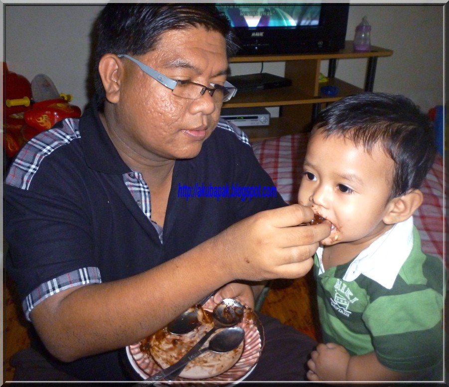 Oleh kerana risau Khalish akan mengamuk ayah dan ibu dia tiada di sisi, kami pulang awal. Sampai di rumah, Khalish yang dah siap dimandikan Umai (adik bongsu Orang Rumah Bapak) rilek je. Dengan tersengih-sengih dia menyambut kepulang kami dengan berkata : " Ha, dah balik pun!".